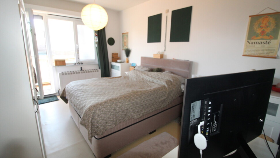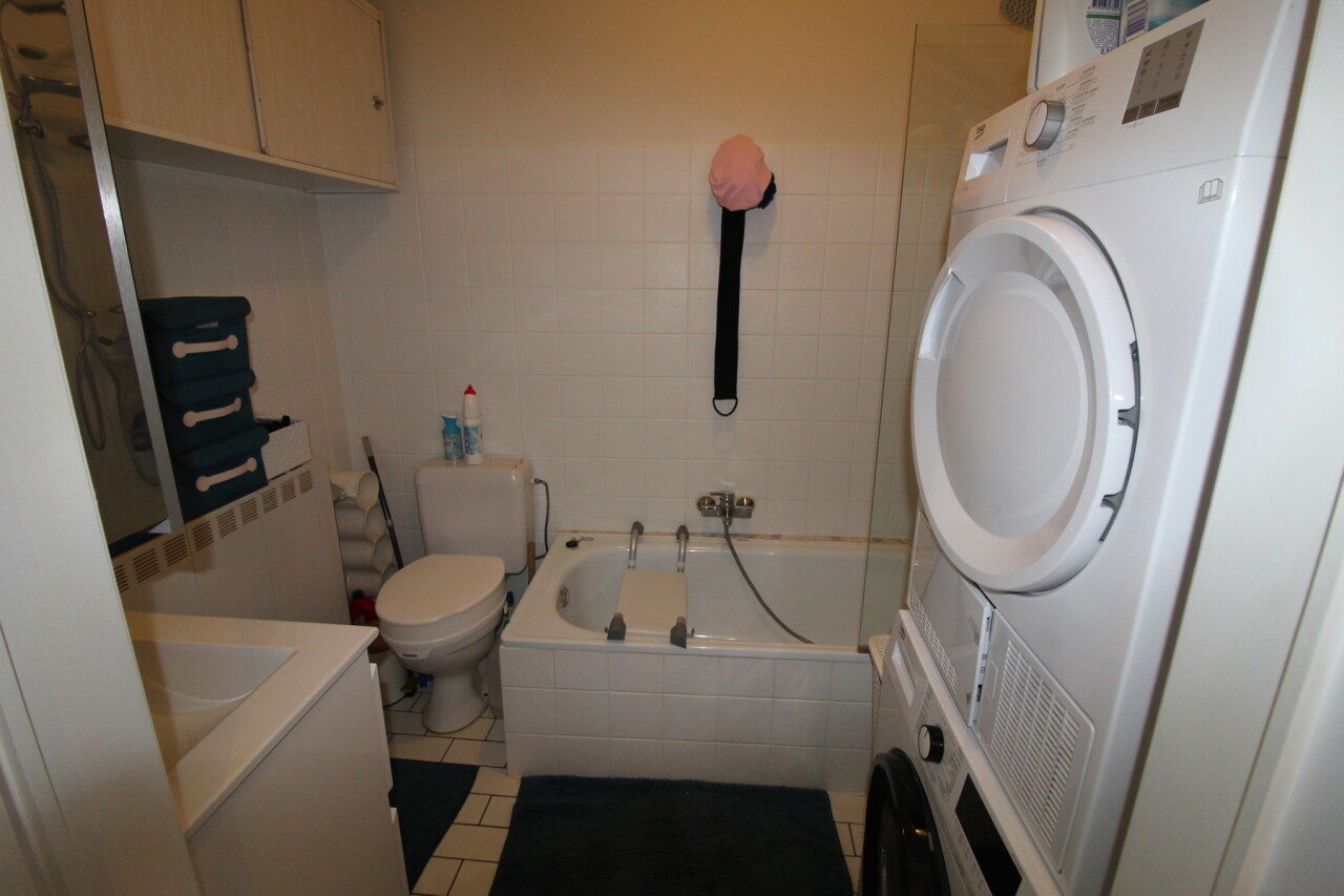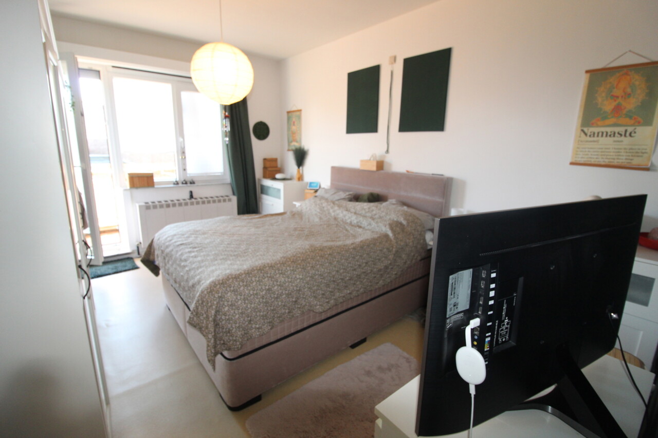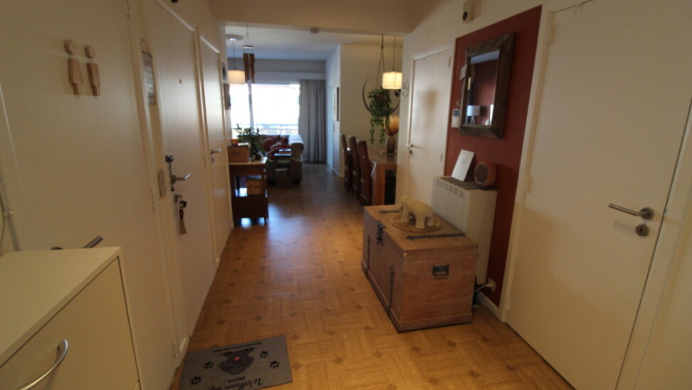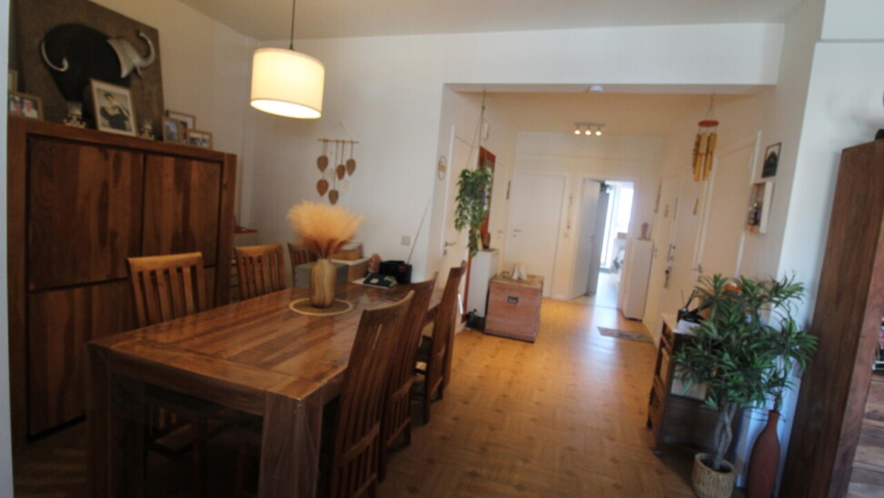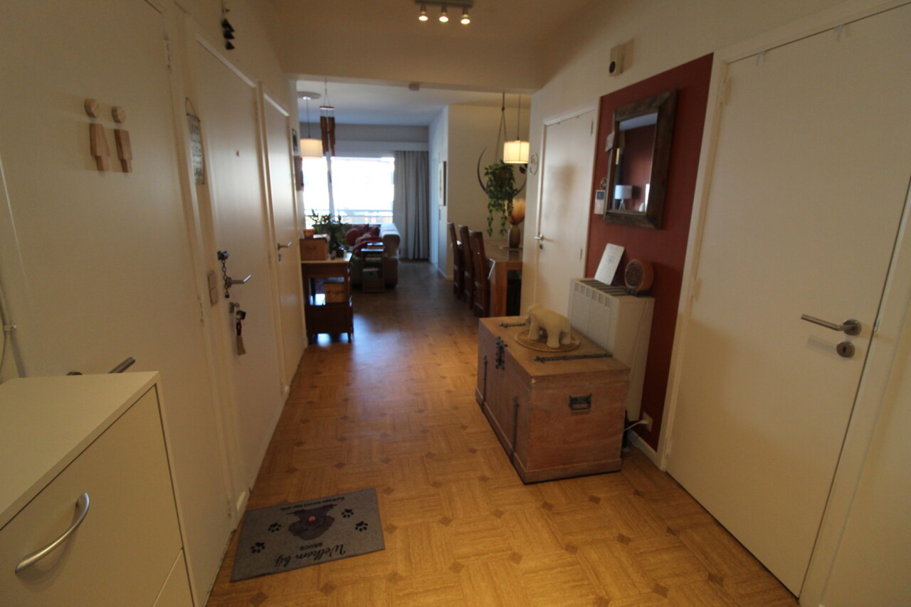 Inkomhal met apart toilet en berging, 2 grote slaapkamers, badkamer met douche, 2 terrassen (voor-en achteraan), lichtrijke leefruimte, geïnstalleerde keuken. Met garage.