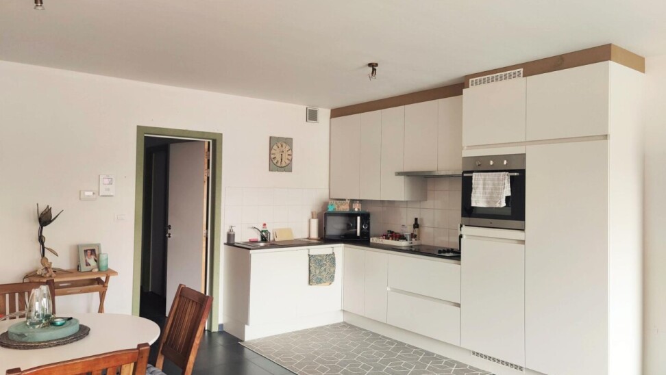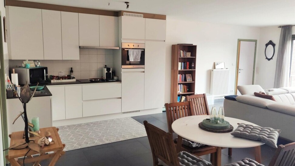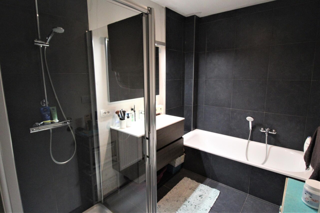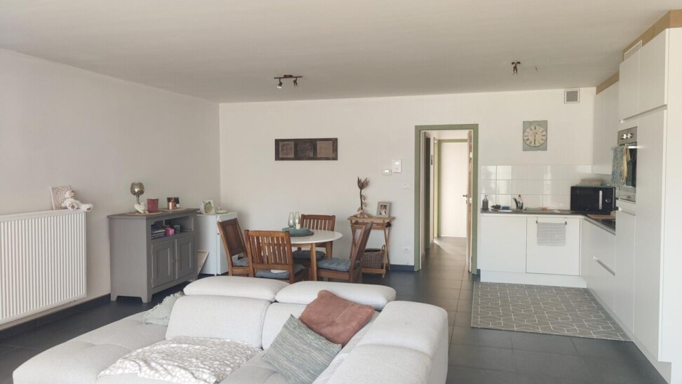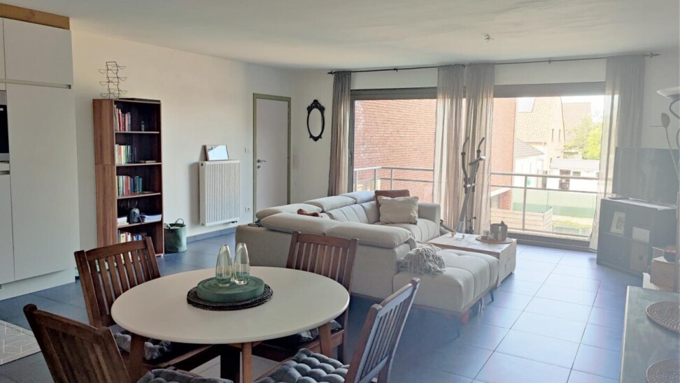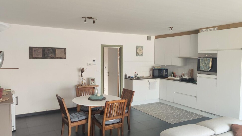 Dit prachtige appartement in het rustige Gijzegem omvat een inkomhal, een apart toilet, een lichtrijke leefruimte met zithoek, een prachtige open keuken, een praktische berging, een luxueuze badkamer met douche en bad, één masterbedroom en één kleinere kamer die dienst kan doen als bureel of extra slaapkamer.