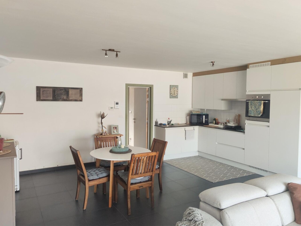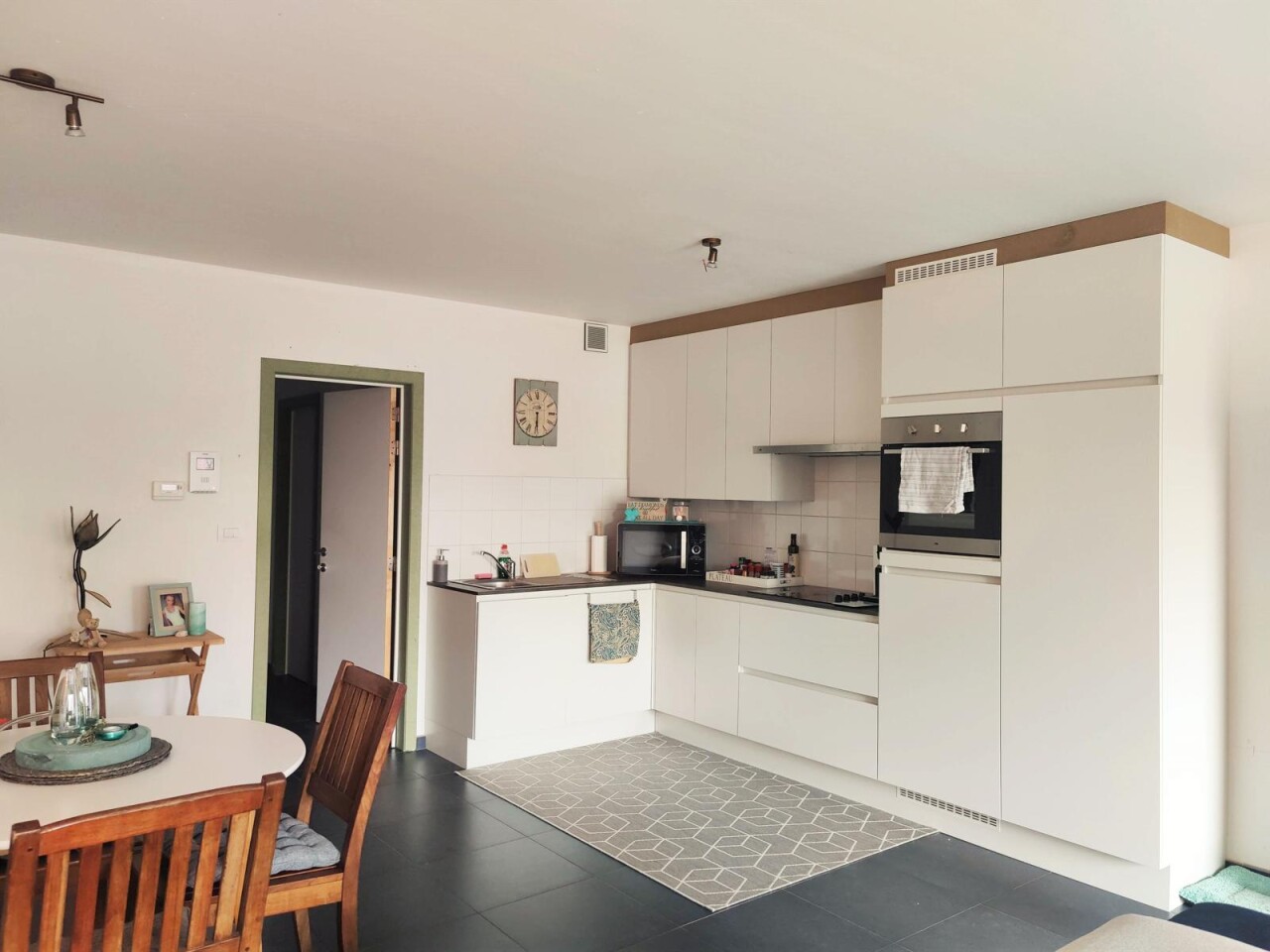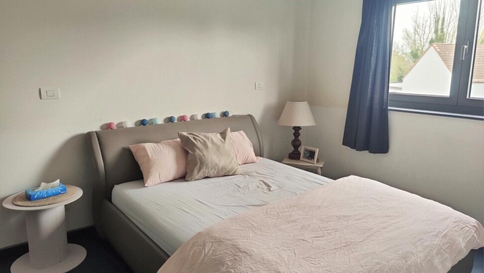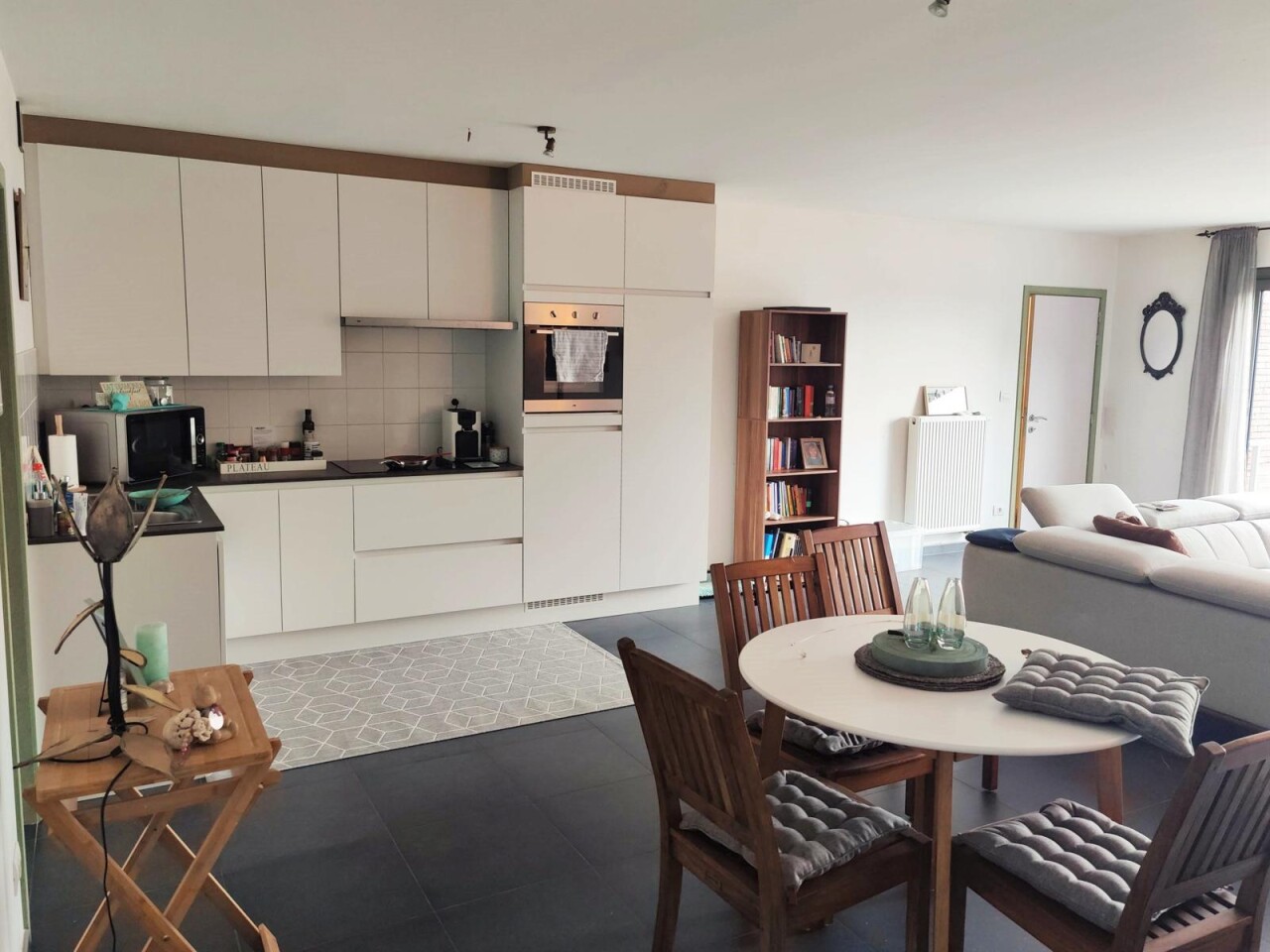 Dit prachtige appartement in het rustige Gijzegem omvat een inkomhal, een apart toilet, een lichtrijke leefruimte met zithoek, een prachtige open keuken, een praktische berging, een luxueuze badkamer met douche en bad, één masterbedroom en één kleinere kamer die dienst kan doen als bureel of extra slaapkamer.