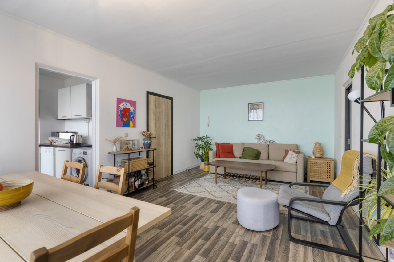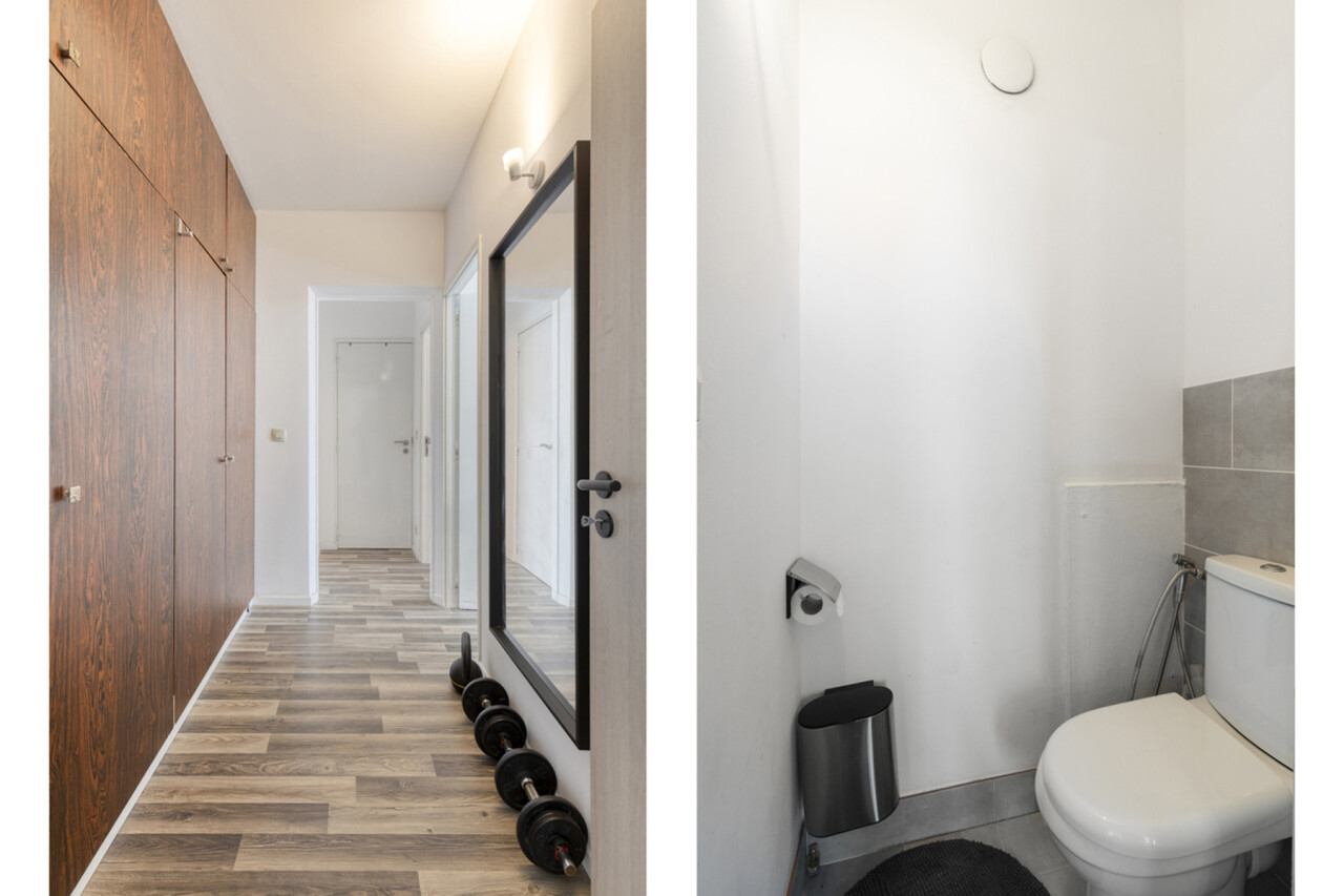 Het appartement omvat een inkomhal, lichtrijke leefruimte, volledig uitgeruste keuken met alle apparatuur (oven, vaatwasser, wasmachine, koelkast ...), nachthal, twee slaapkamers, een apart toilet en een badkamer. Het buitenschrijnwerk werd reeds vernieuwd en voorzien van hoogrendementsglas. Daarnaast beschikt het appartement over een private kelderruimte (nr 96)