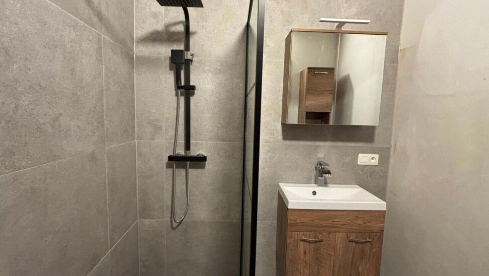 Het appartement beschikt over vernieuwde elektriciteit met conformiteitsattest. Ook de badkamer met douche en lavabomeubel werden volledig vernieuwd.
