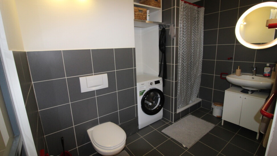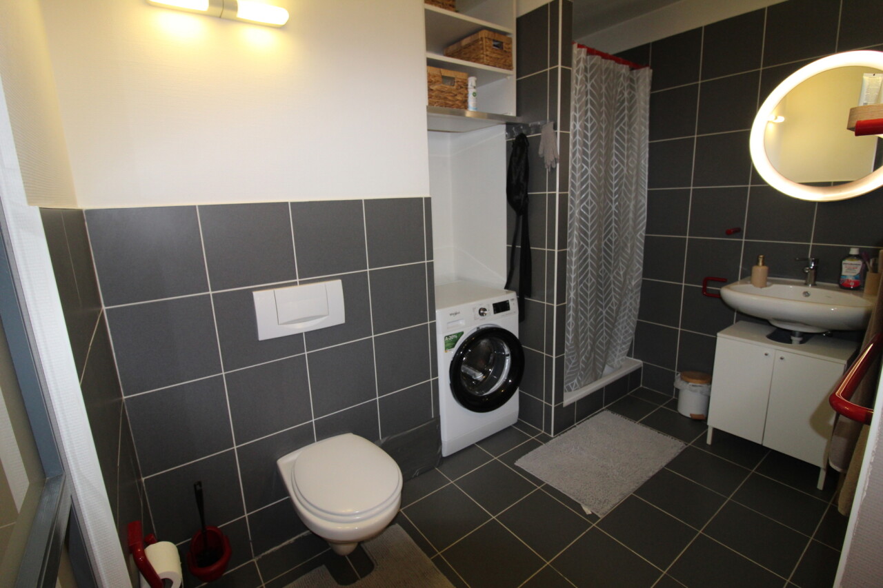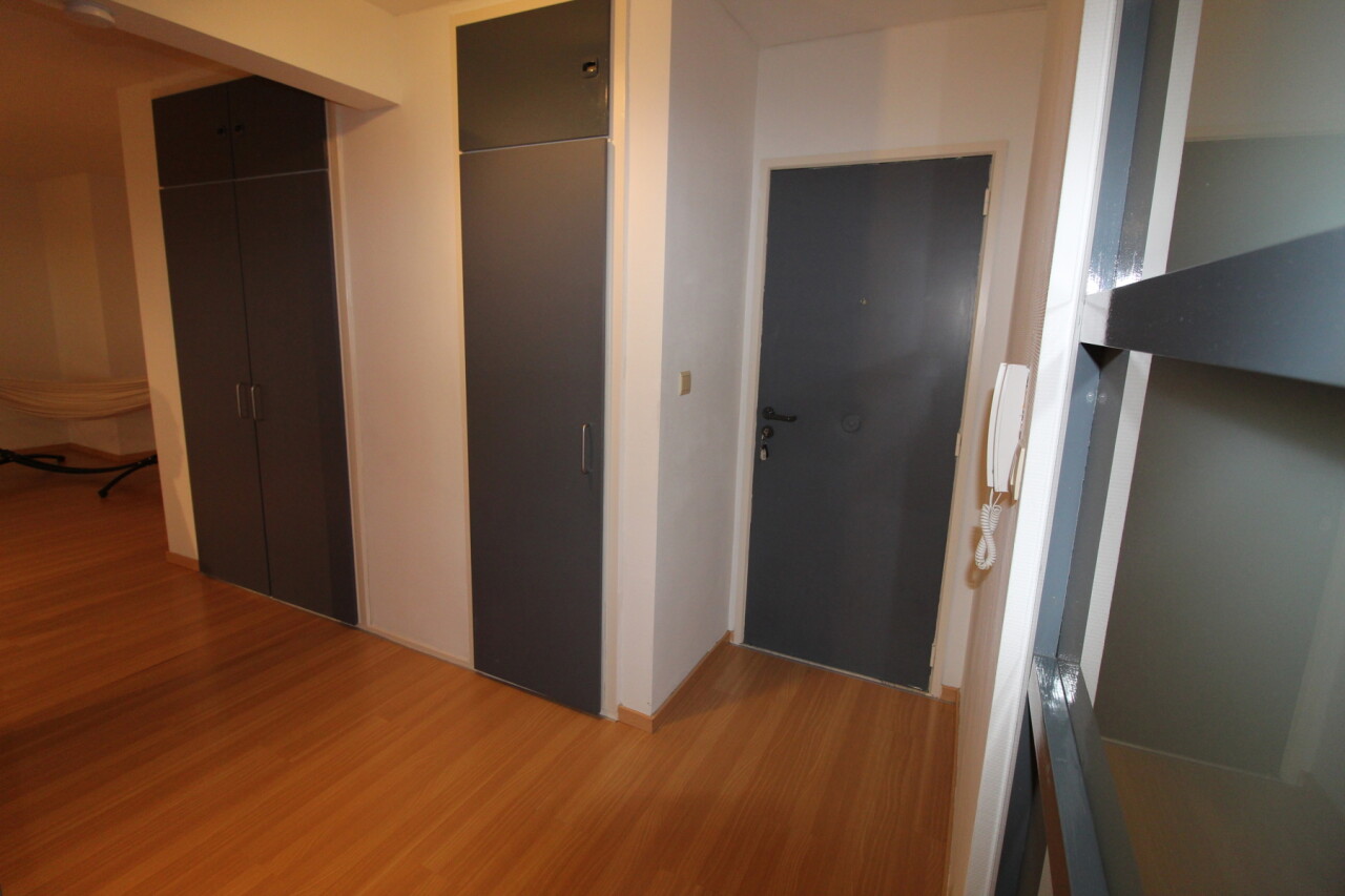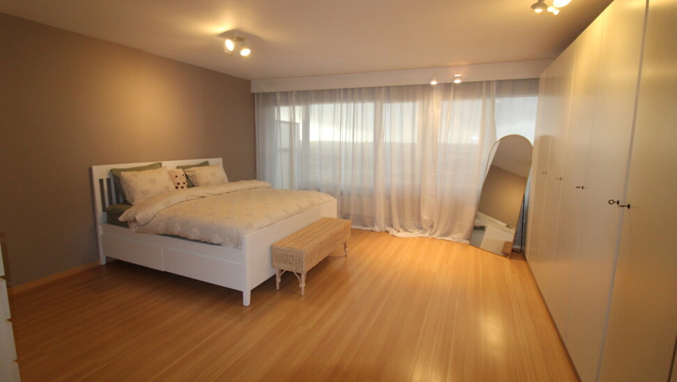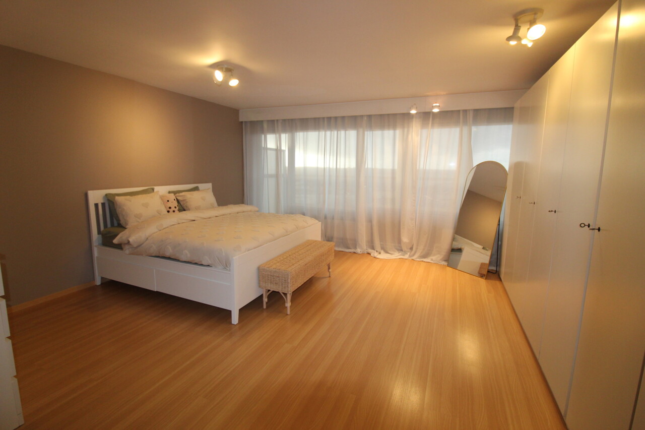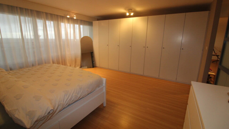 Inkomhal met ingemaakte kasten, heel ruime living met terras en een gigantisch uitzicht, geïnstalleerde keuken, 1 heel grote slaapkamer die ook toegang biedt tot het terras, badkamer met lavabo, douche, toilet, wasmachine etc.