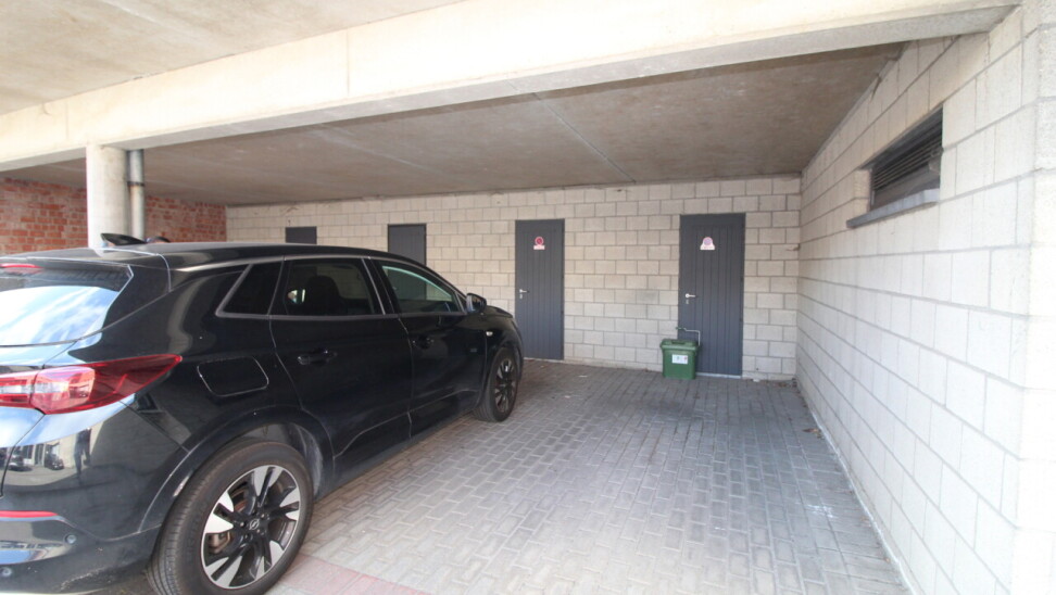 Daarnaast beschikt het appartement over een overdekte autostaanplaats, een privatieve buitenberging en toegang tot een gemeenschappelijke fietsenberging.