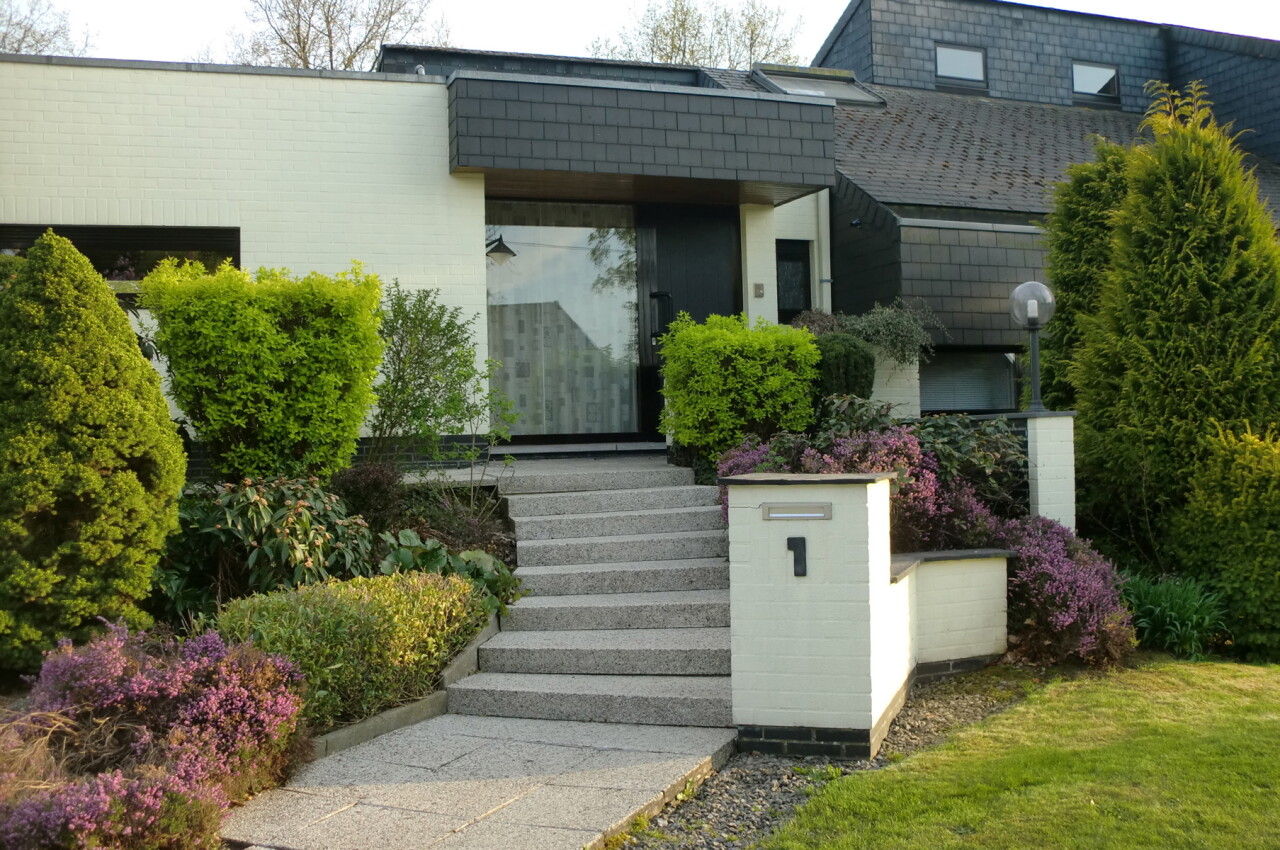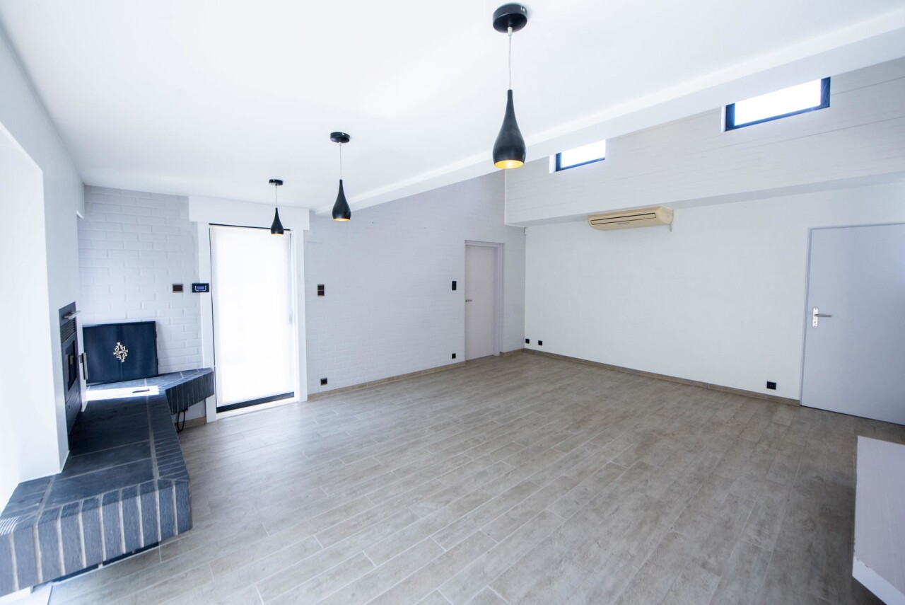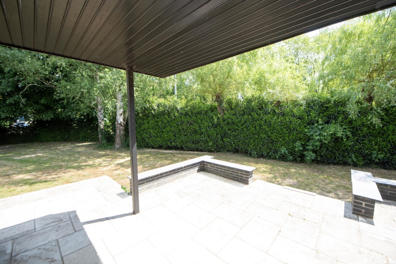 - Tussenverdieping: prachtige living met zitkuil, baadt in het licht en biedt een sfeervol uitzicht op de aangelegde tuin.