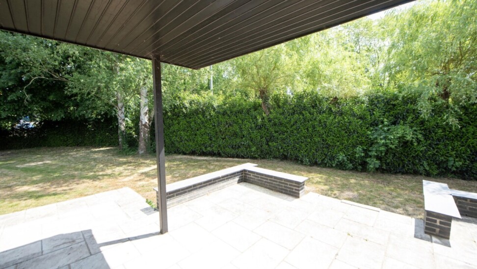 - Gelijkvloers: ruime inkom, grote inpandige garage, carport, twee volwaardige slaapkamers en een moderne badkamer.